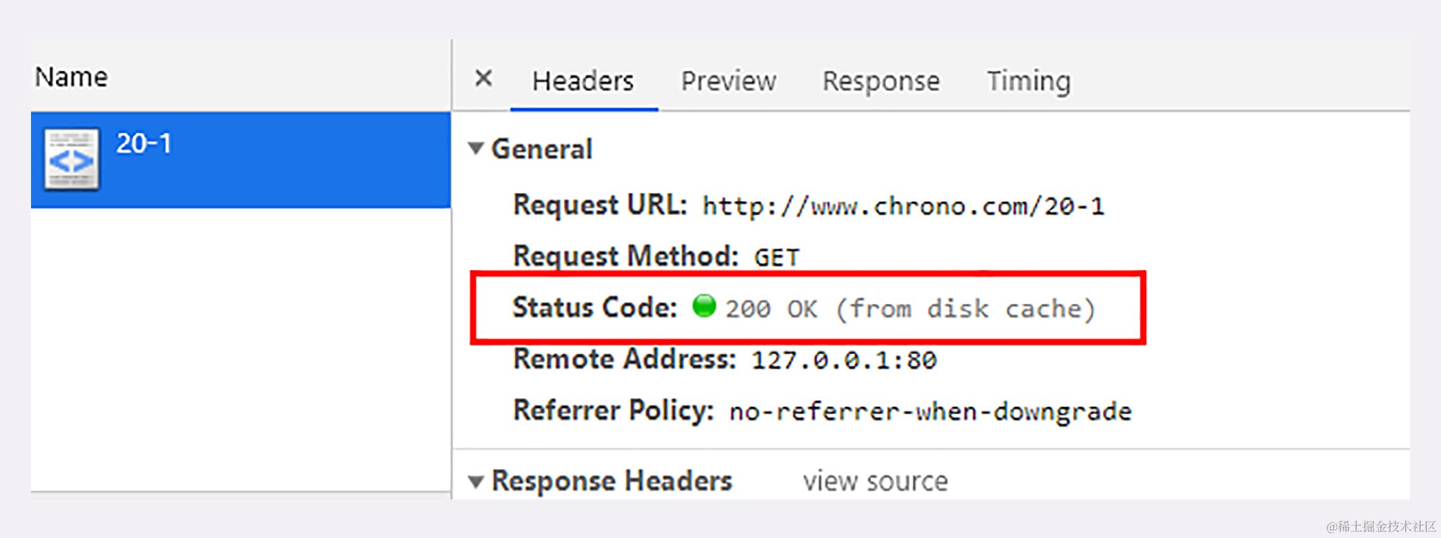 你可以访问实验环境的 URI “/20-1”,看看具体的请求 - 应答过程。