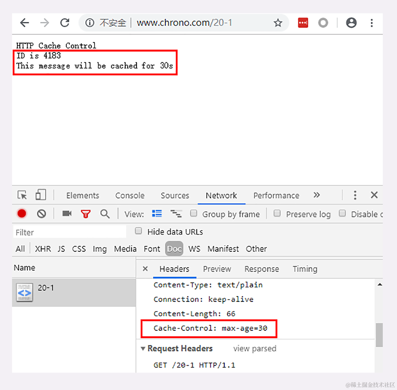 你可以在 Chrome 里点几次“刷新”按钮,估计你会失望,页面上的 ID 一直在变,根本不是缓存的结果,明明说缓存 30 秒,怎么就不起作用呢?