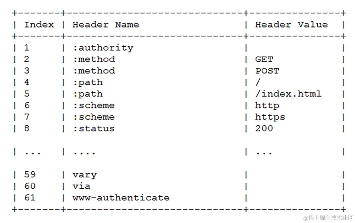 这就要用到“动态表”(Dynamic Table),它添加在静态表后面,结构相同,但会在编码解码的时候随时更新。