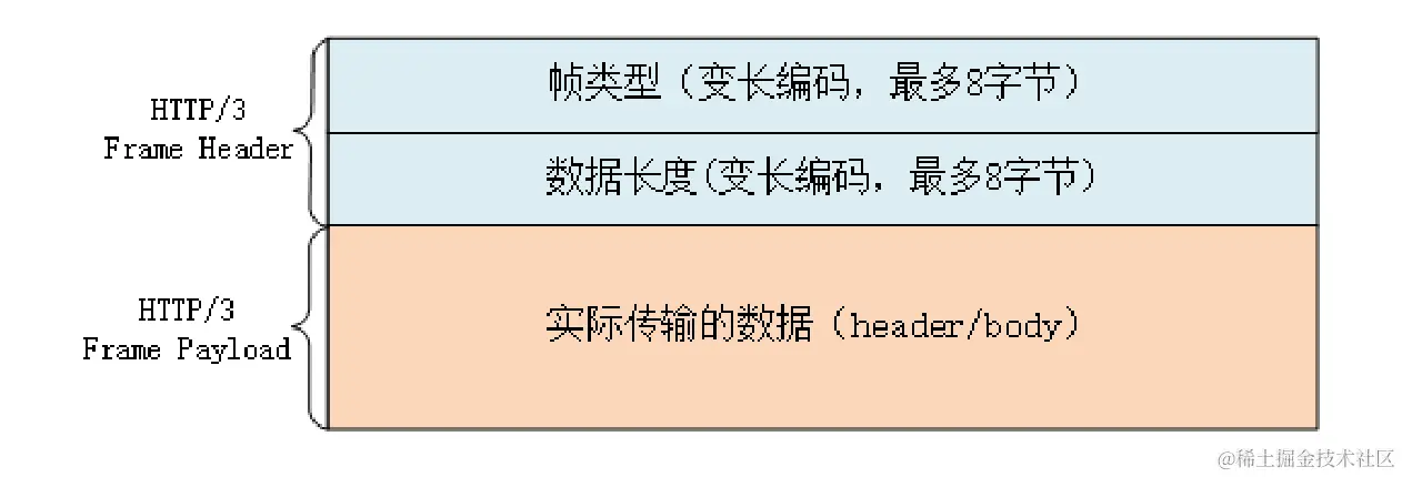 由于流管理被“下放”到了 QUIC,所以 HTTP/3 里帧的结构也变简单了。