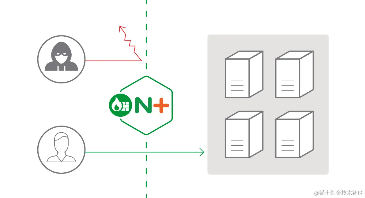 你可能对传统的“防火墙”比较熟悉。传统“防火墙”工作在三层或者四层,隔离了外网和内网,使用预设的规则,只允许某些特定 IP 地址和端口号的数据包通过,拒绝不符合条件的数据流入或流出内网,实质上是一种网络数据过滤设备。