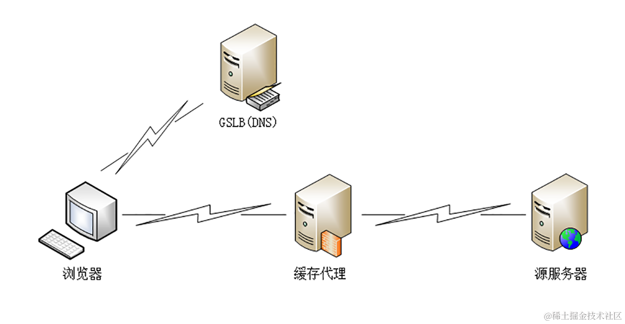 全局负载均衡(Global Sever Load Balance)一般简称为 GSLB,它是 CDN 的“大脑”,主要的职责是当用户接入网络的时候在 CDN 专网中挑选出一个“最佳”节点提供服务,解决的是用户如何找到“最近的”边缘节点,对整个 CDN 网络进行“负载均衡”。