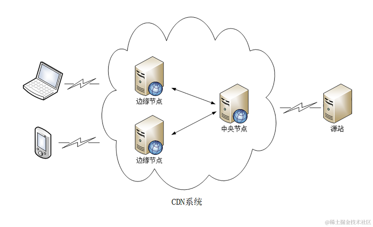 - CDN 构建了全国、全球级别的专网,让用户就近访问专网里的边缘节点,降低了传输延迟,实现了网站加速;