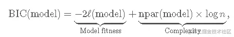 其中是模型的对 数似然度 (模型拟合数据的程度),而