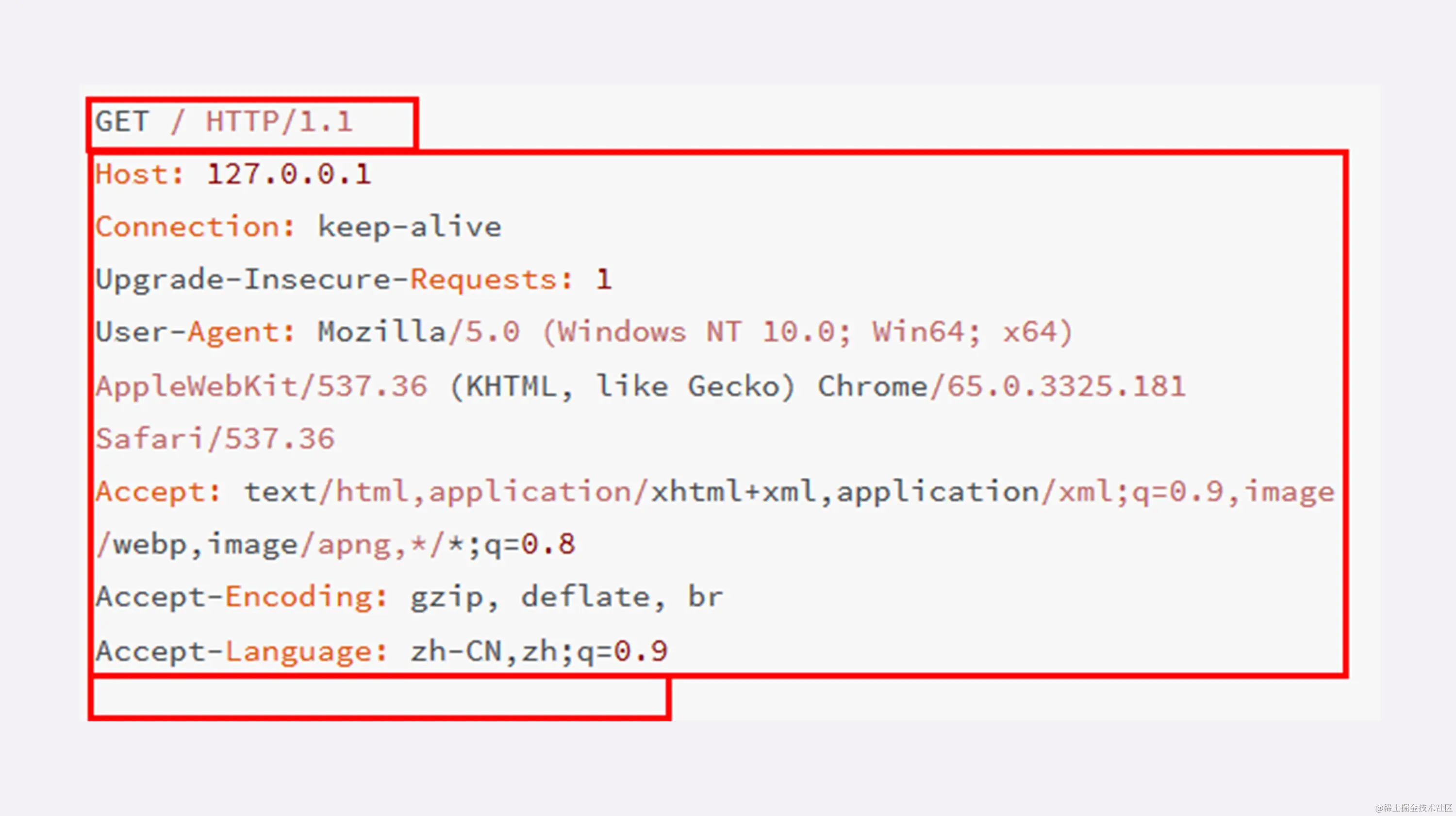 - 请求头由“请求行 + 头部字段”构成,响应头由“状态行 + 头部字段”构成;