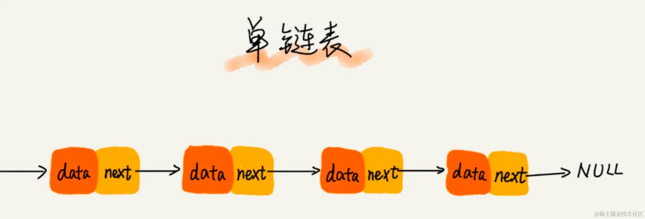 链表结构五花八门,今天我重点给你介绍三种最常见的链表结构,它们分别是:单链表、双向链表和循环链表。我们首先来看最简单、最常用的单链表。