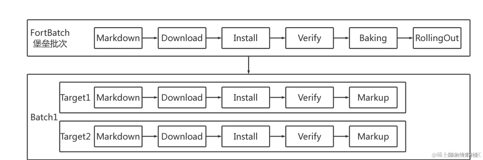 这里需要注意的是, 堡垒批次不同于其他批次:堡垒批次中 DeploymentTarget 的 Chain 的 最后一个子任务是 Verify 点火,而不是 Markup。