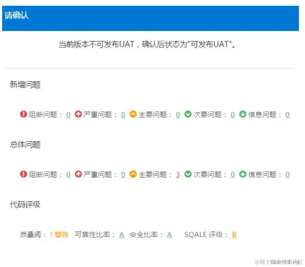第六步:发布到用户验证环境(UAT)前,先查看静态检查结果。如果没有通过检查,则不允许发布。