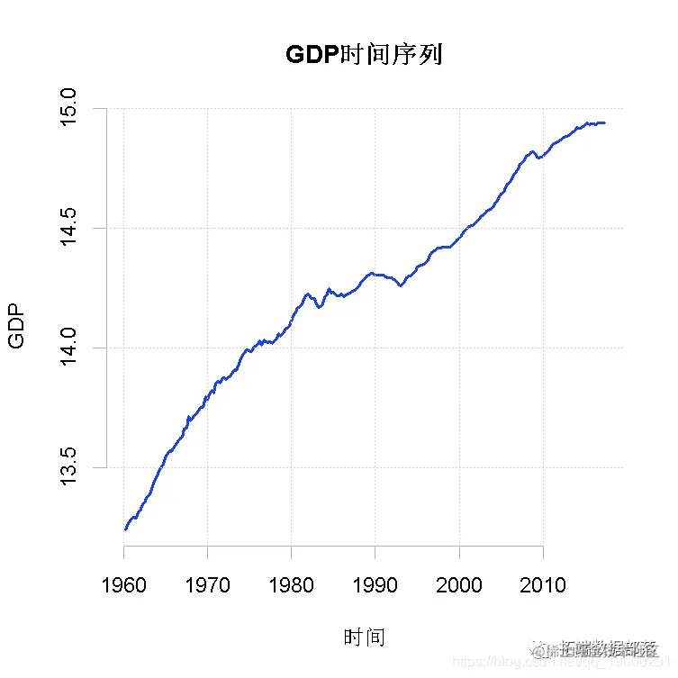 plot.ts(gdp, ylab = "") # 绘制时间序列