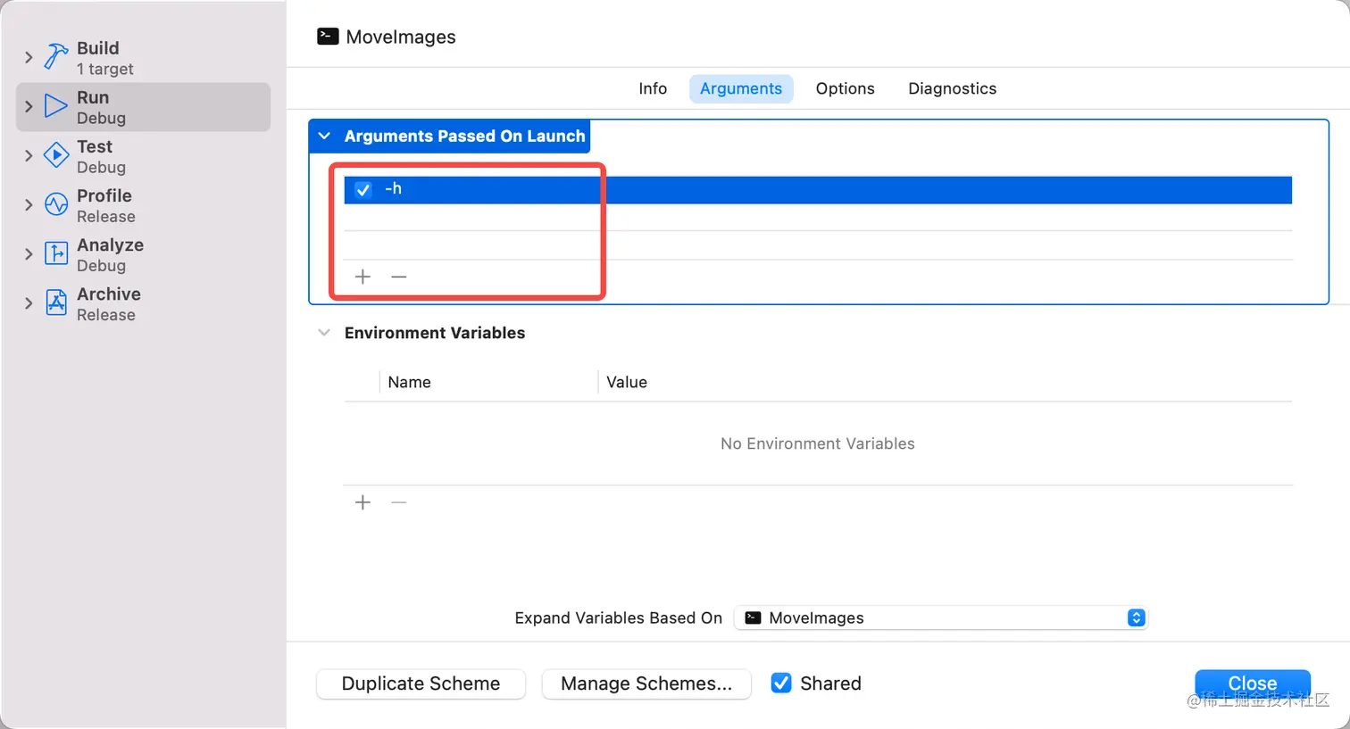 Edit Scheme添加参数模拟静态执行方式调试