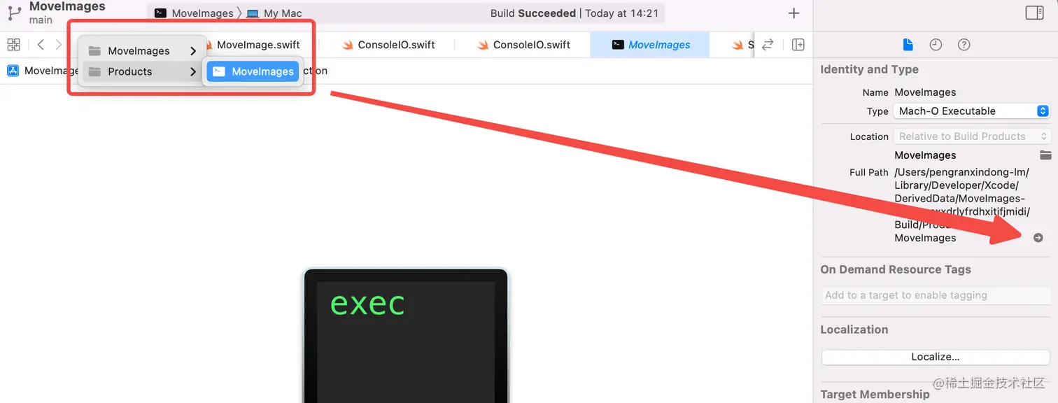 - 切换至 Products 目录定位可执行文件位置。