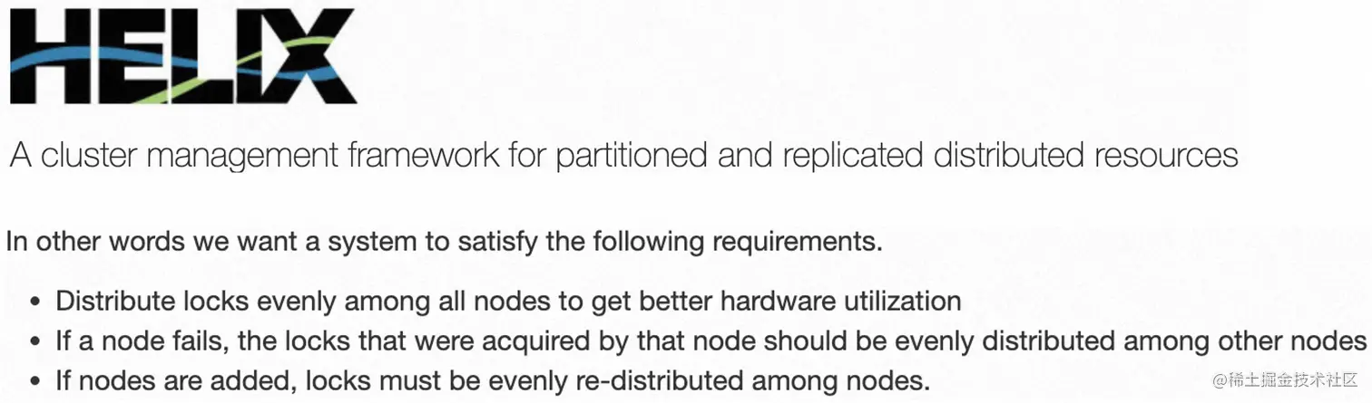 我们应该给分布式锁建立怎么样的设计模型呢?这个问题可以换个视角来看,我们应该建立怎么样的合理性质来打造出一个分布式锁模型?我们不妨参考一下来自业界的两个定义。首先是 Apache Helix(开源社区一个风头正劲的通用集群资源管理框架,它能被用作自动管理存在于集群节点上的分区的,有副本的分布式资源)对于分布式锁管理器的性质定义:a)均匀分布,不是先开始的节点获取所有的分布式锁;b)再调度的均衡性,需要妥善处理持有分布式锁的节点意外退出后的锁资源分配问题;c)再平衡,当有新的节点加入的时候,节点间的锁资源应该再分配以达到均衡。看的出来,Helix 对分布式锁模型的定义非常强调均衡性,考虑到它是负责集群内的分区资源调度的,这个侧重点并不让人意外。