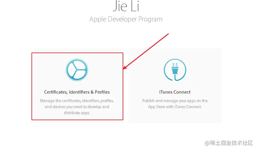 2、登录成功后,点击 Certificates, ldentifiers & Profiles,如下图所示: