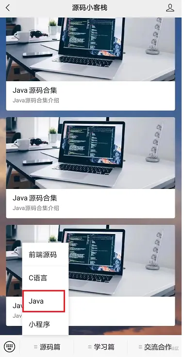 关注《源码小客栈》,点击菜单进去即可!