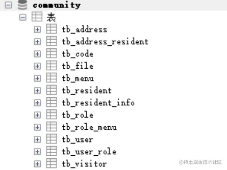 创建一个数据库,名称为community,然后再导入sql文件即可,这里小编就不多赘述了,数据库表结构如下: