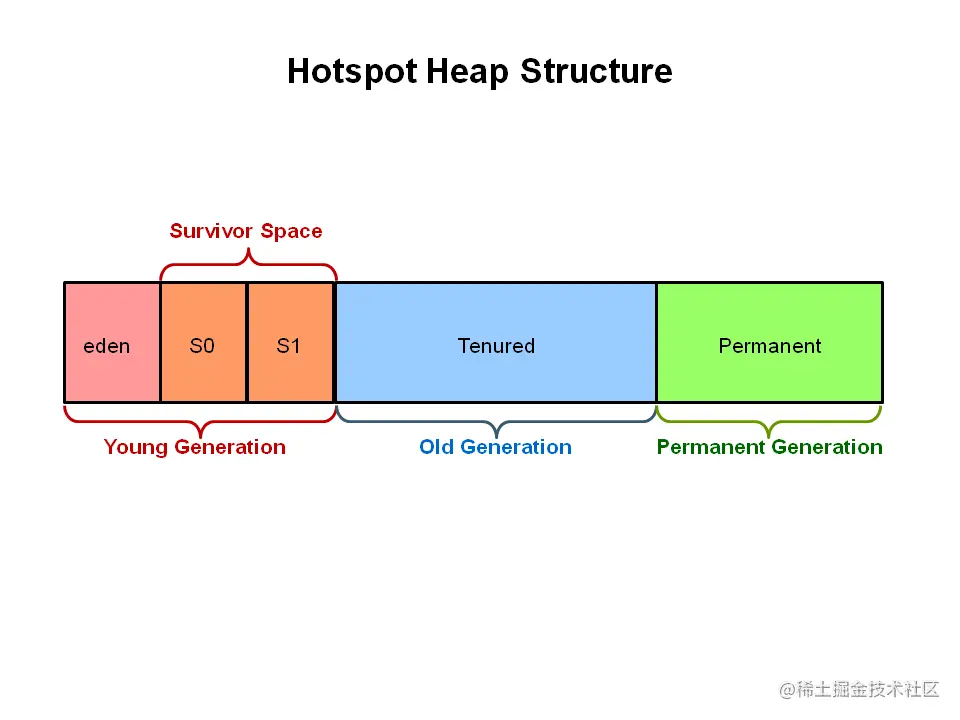 事实上,这些区域被逻辑划分为 eden、survivor 和老年代区域。