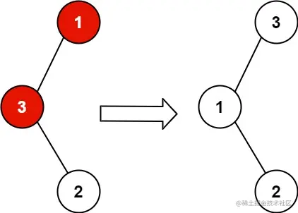 解释: 3 不能是 1 的左孩子,因为 3 > 1 。交换 1 和 3 使二叉搜索树有效。
