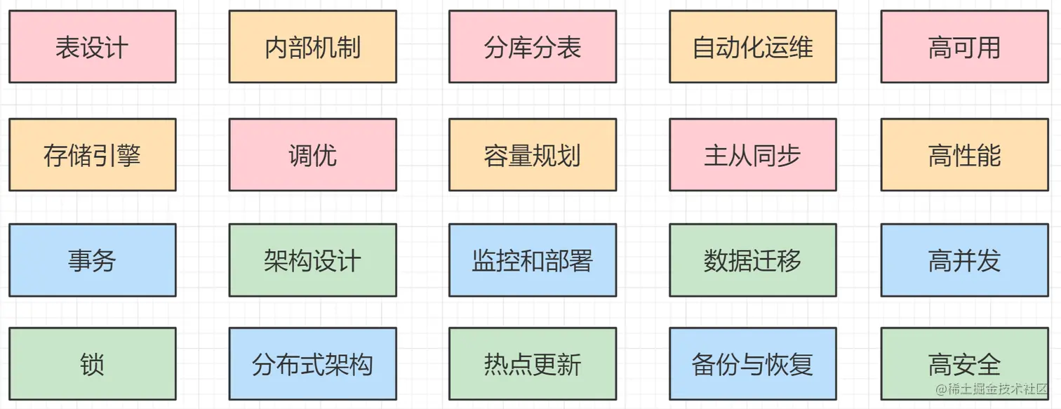 MySQL 包括系统、网络、硬件、性能优化、高可用、架构设计等等方面的扩展和深入;