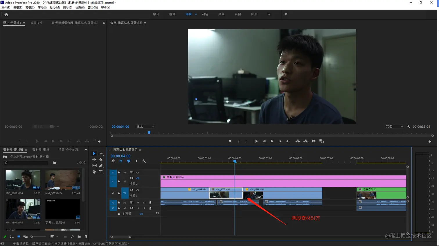 - 然后对齐,完成视频剪辑,后边的也都是同样的操作,把中间的过程剪掉。