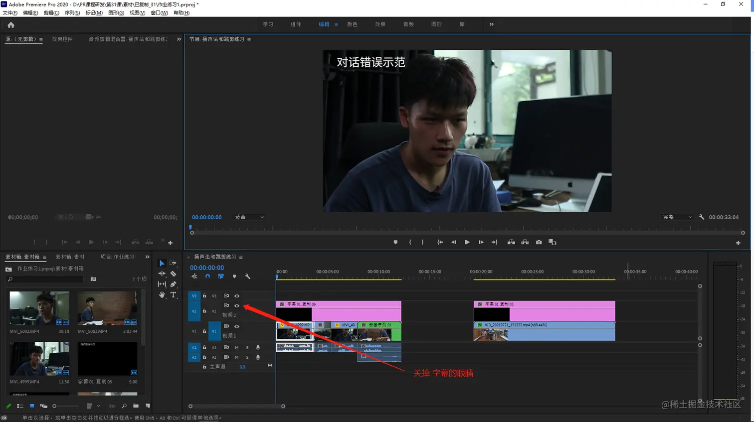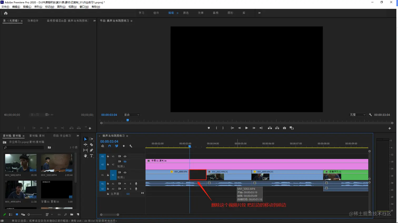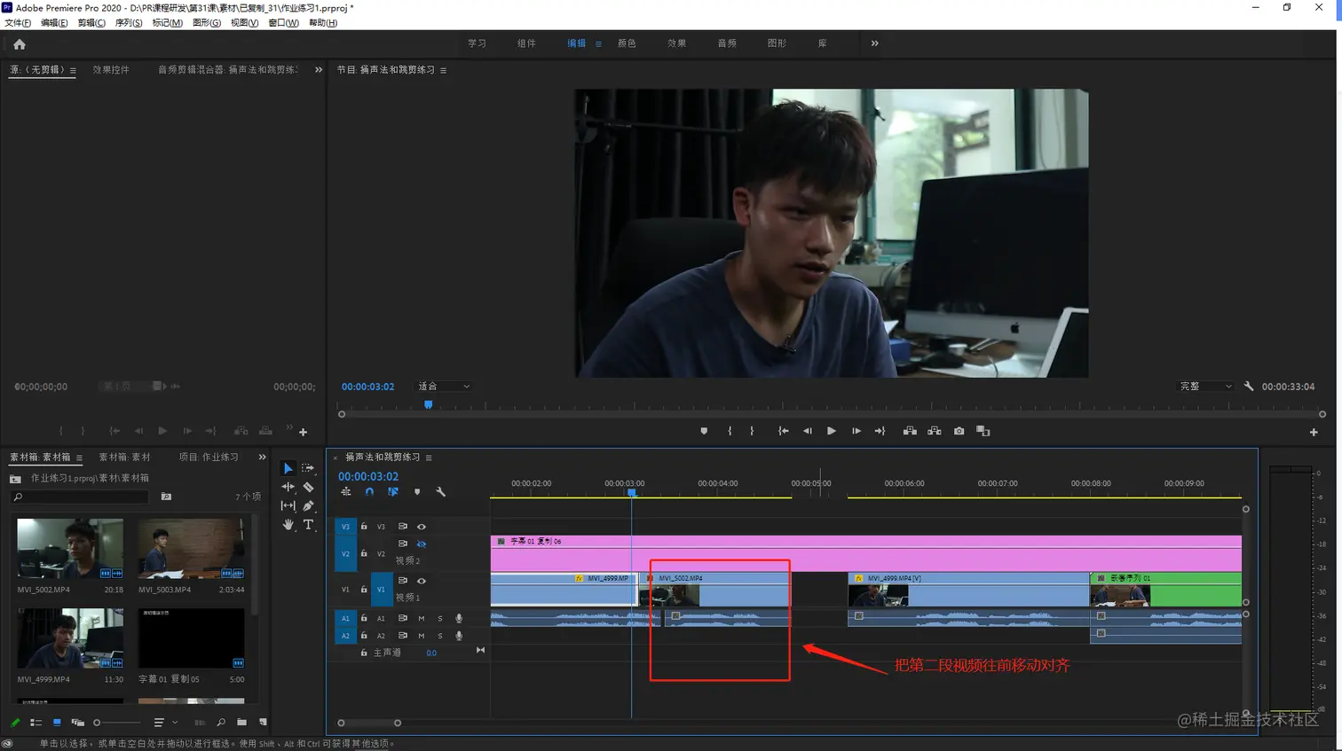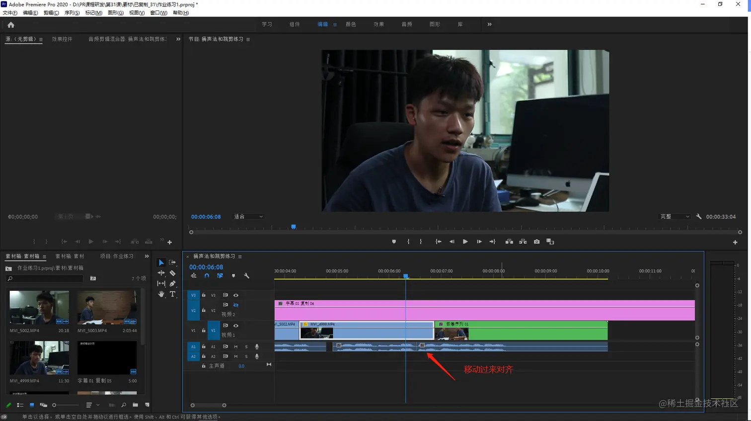 剪辑完毕移动对齐,完成捅声法纠错练习