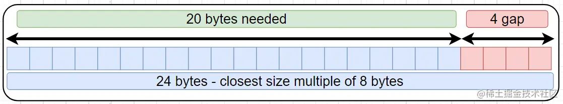 由于内存(字大小)结构的性质,任何内存都是 8 的倍数,如果不是,系统将自动添加额外的字节(但对于 8/32 系统,最小大小仍然是 16 和 64 字节)