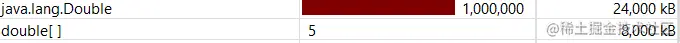 通常,关键区别隐藏在双基元包装器对象中,而不是在 ArrayList 或 TDoubleArrayList 结构中。因此,简化 1M 记录的差异: