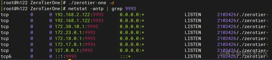 启动后,会自动绑定9993端口,查看9993端口被绑定,即表示启动成功: