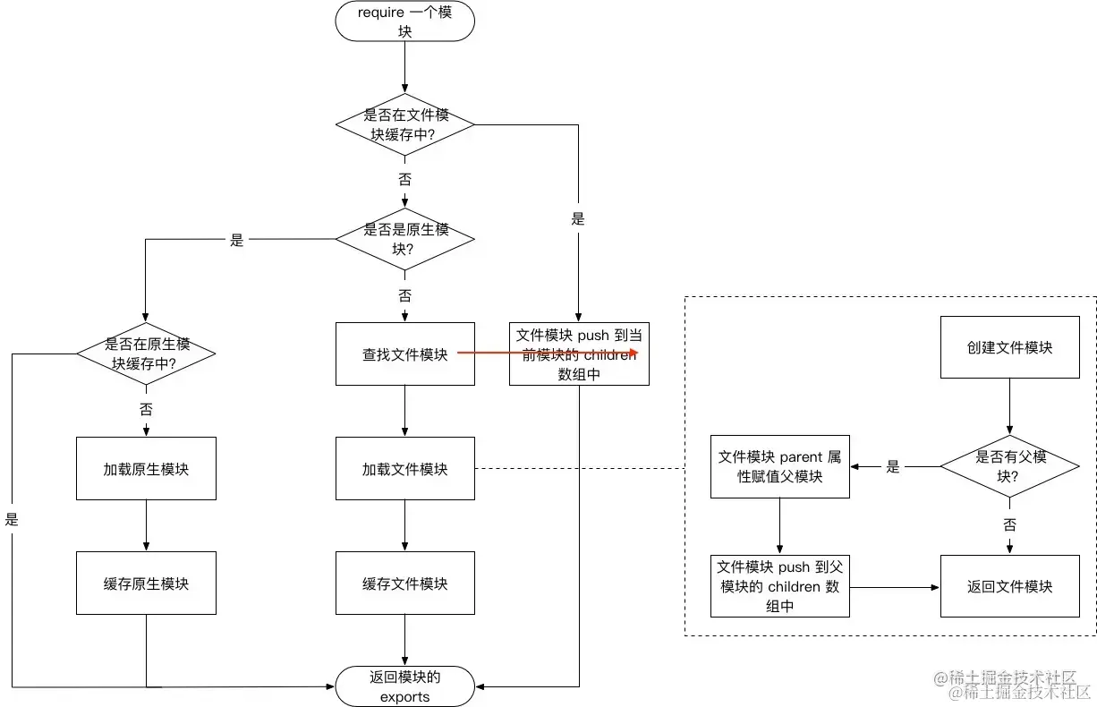 执行后,Node内部会载入内置模块或通过NPM安装的模块。require函数会返回一个对象,该对象公开的API可能是函数、对象或者属性如函数、数组甚至任意类型的JS对象。