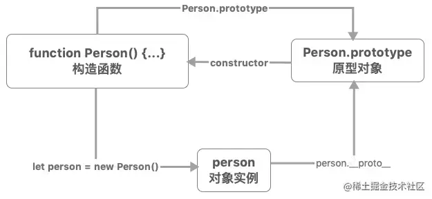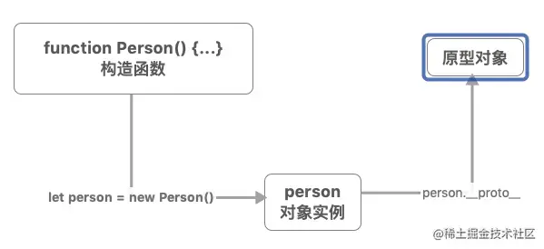 __proto__属性指向构造函数的prototype属性。 - 将构造函数调用的this指向这个新对象,并执行构造函数。