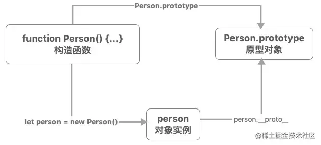 回忆一下之前的描述,构造函数都有一个prototype属性,指向使用这个构造函数创建的对象实例的原型对象。