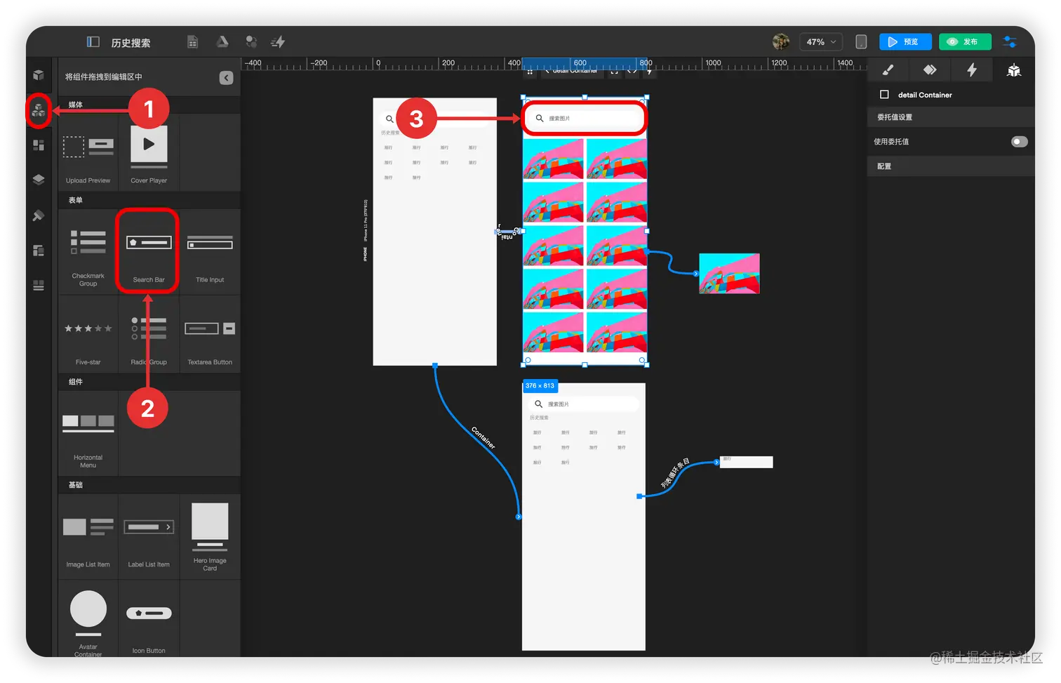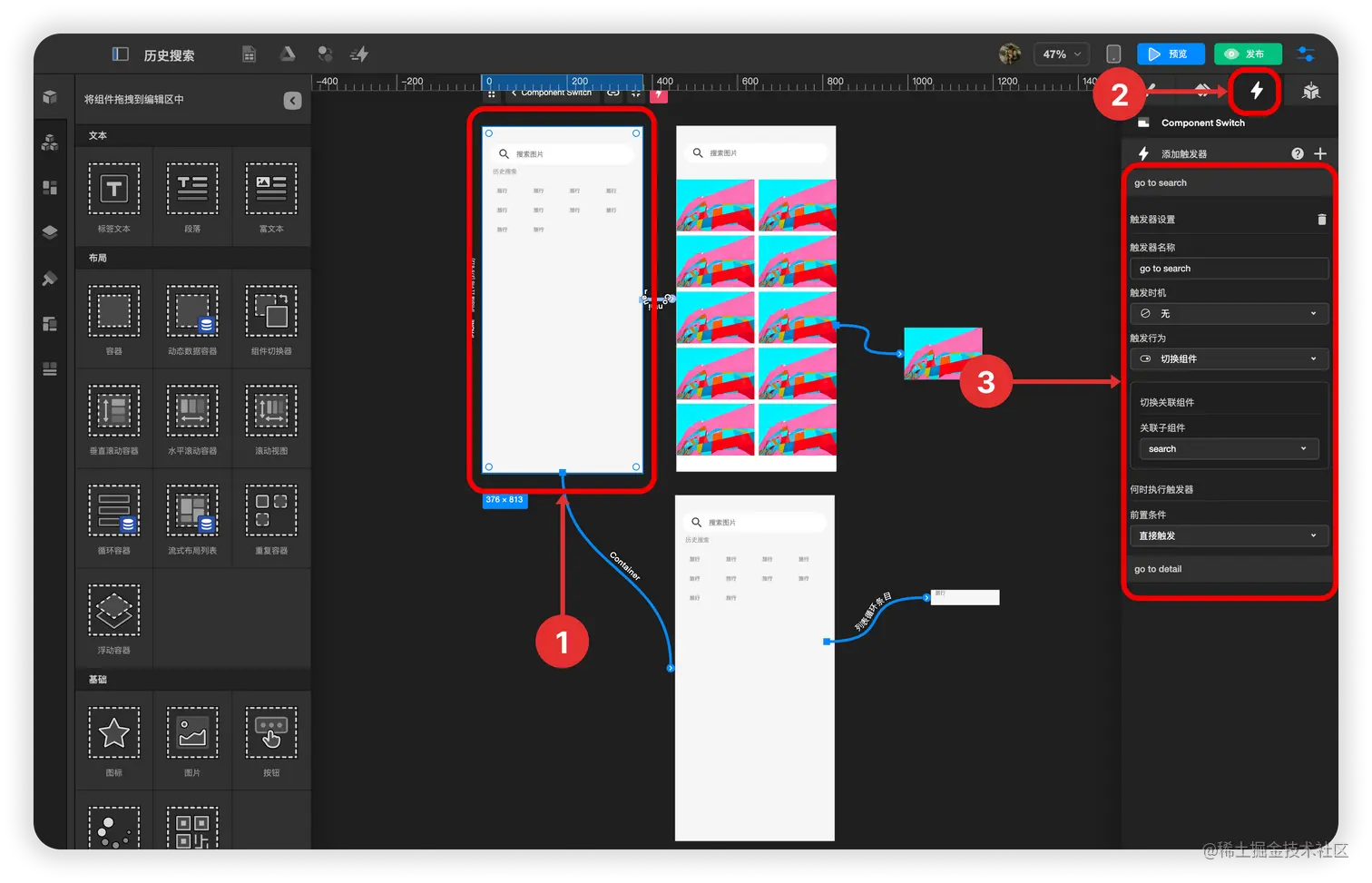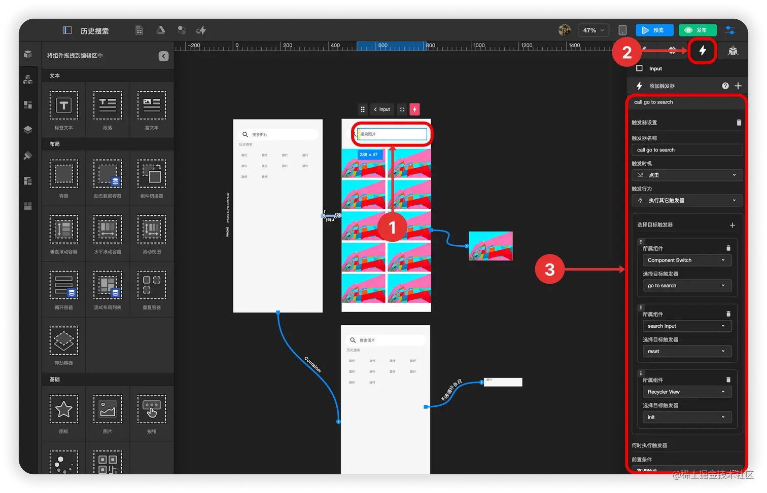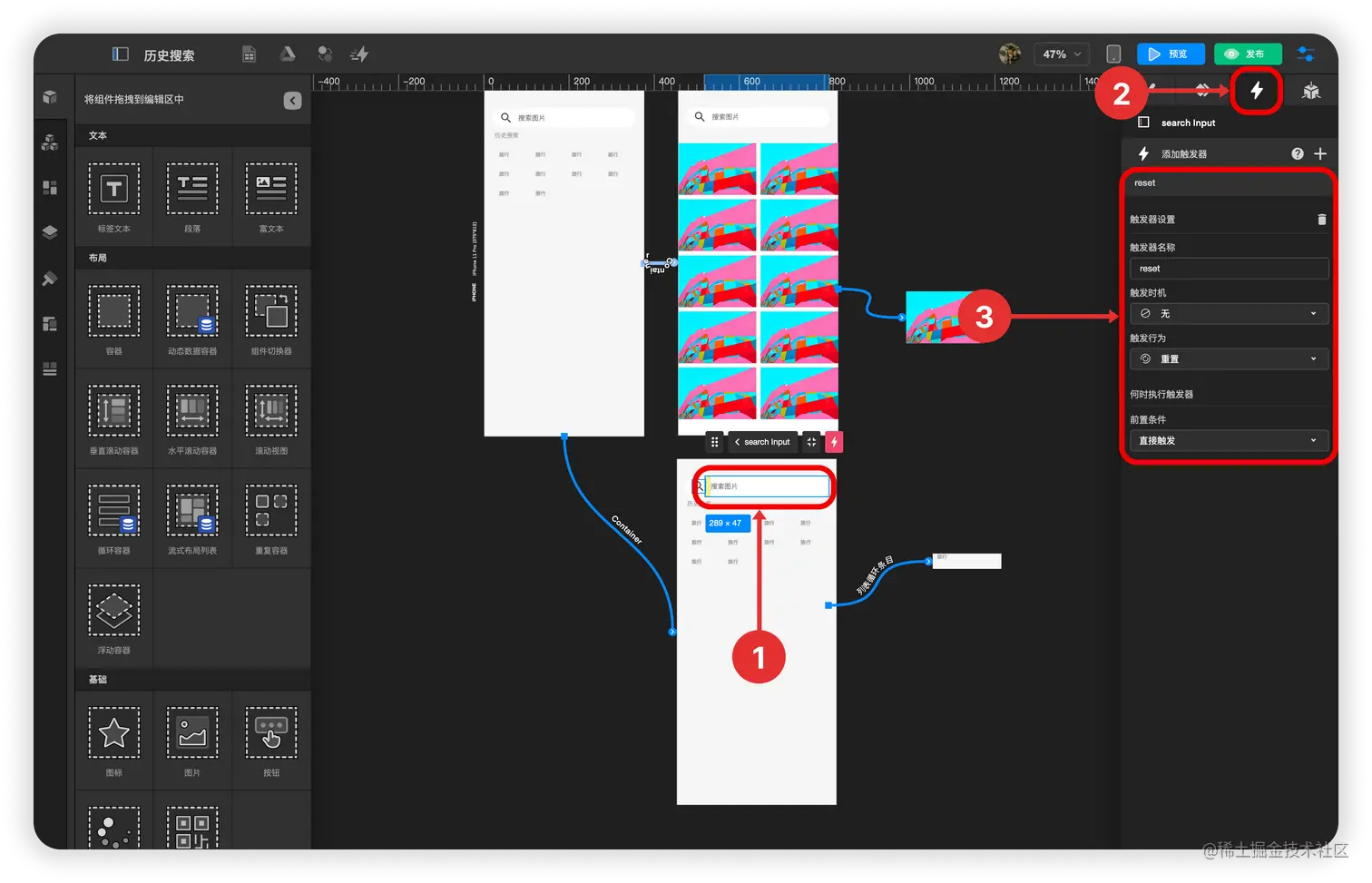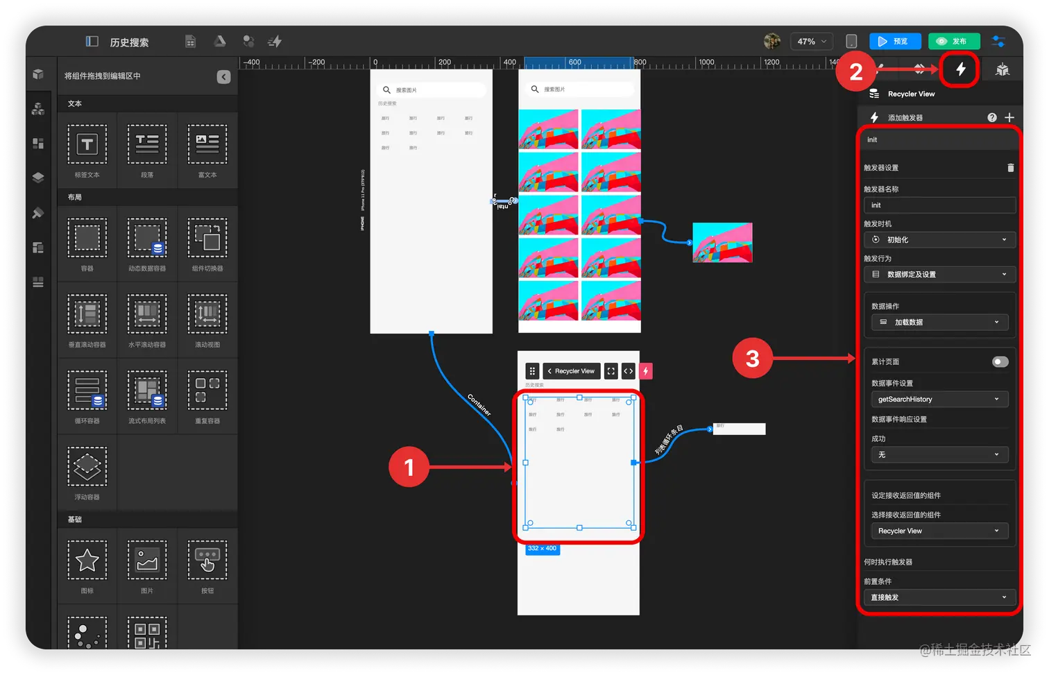 通过使用数据中心的创建事件和API Hub中定义成功的搜索图片接口实现一个历史搜索展示