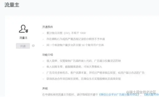 流量主简单点来说就是一个微信赚钱的一个功能,需要粉丝达到一定量级才可以开通的,开通之后可以通过观看广告获得收益。