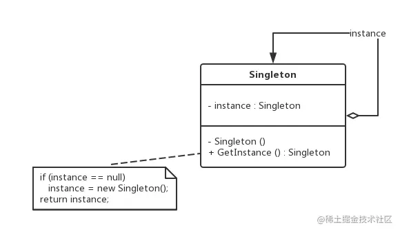 - 在单例类的内部实现只生成一个实例,同时它提供一个静态的GetInstance()方法,让客户可以访问它的唯一实例;