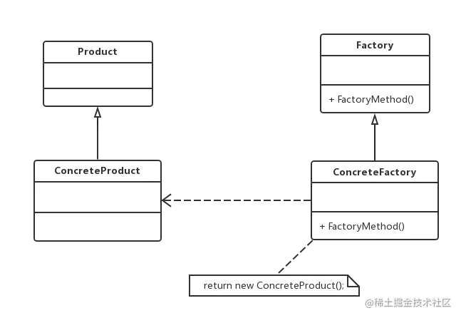 - 工厂方法用于创建客户所需要的产品,还向客户隐藏了哪种具体产品类将被实例化这一细节。因此,用户只需要关心所需产品对应的工厂,无须关心创建细节。