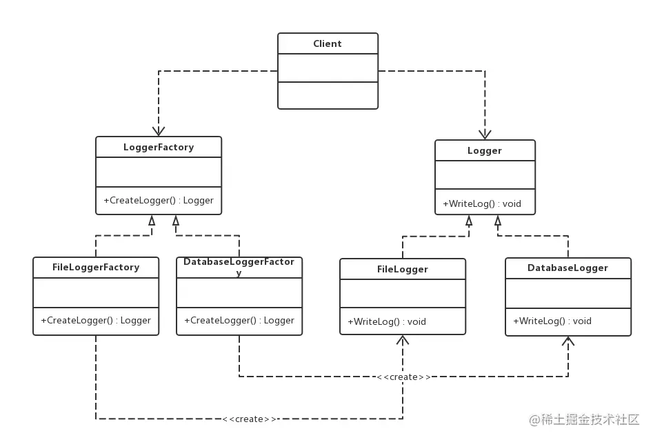 (4)具体工厂:FileLoggerFactory和DatabaseLoggerFactory类