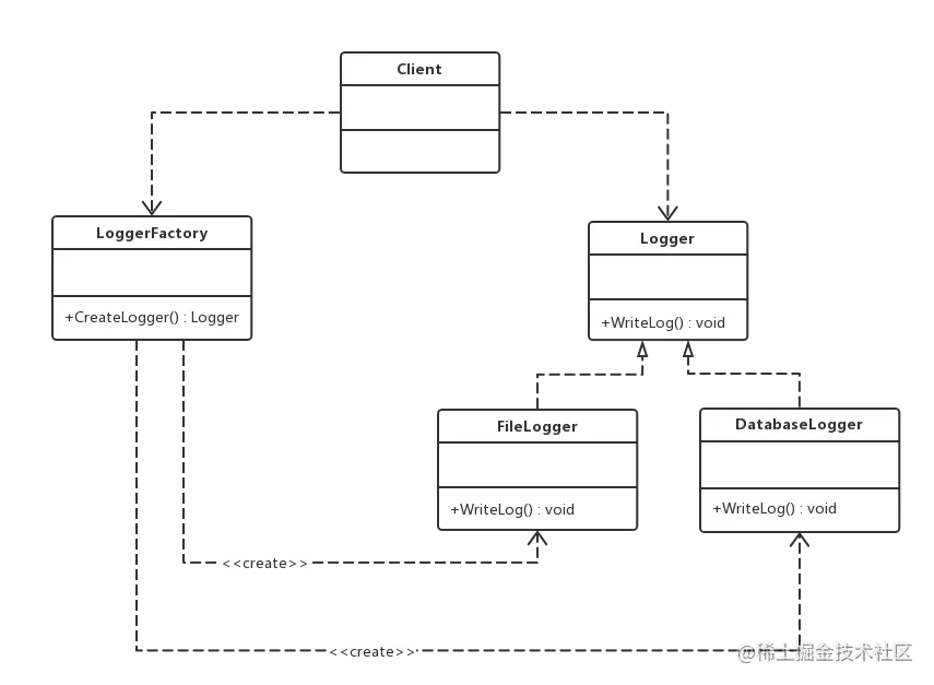 M公司的程序猿按照结构图,写下了核心代码LoggerFactory的CreateLogger方法: