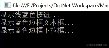 Console.WriteLine("显示浅蓝色按钮...");