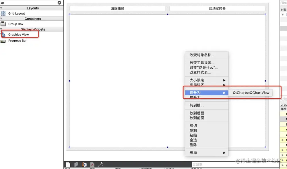 通过“设计”拖动创建的 graphicsView,点击"提升为“后,