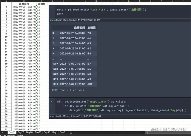 他的原始数据中,7天文件在一个sheet里。记得之前也有写过类似的文章,但是要自己照猫画虎还是有点难度的。