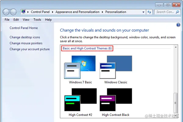 在以往的工作经历中,我也承接过不少可用性相关的开发需求,比如针对视障群体的高对比度主题适配。在 Windows 控制面板的个性化设置,可以启用高对比度主题。
