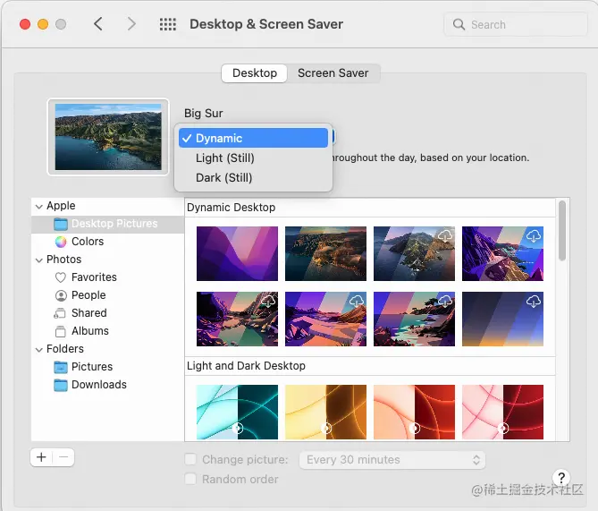 然而一视同仁的处理,在有些情况下就太简陋了。摄影师、设计师、艺术家这一类极其关注视觉效果的客户,很可能提出更精细的要求。以我们手边就有的 macOS 动态壁纸为例,它的一个 HEIC(High-Efficiency Image Container)文件其实存放了多张图片,以便根据时段呈现不同的视觉效果。