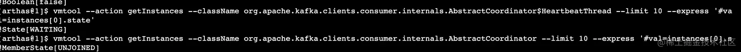 用arthas vmtool命令进一步看下kafka-client相关线程的状态。