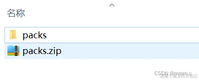 2.压缩后的压缩包解压即是文件,不需要文件夹,就是上面的案例,解压后还有一个packs文件夹,这里跳过,解压出来就是文件列表: