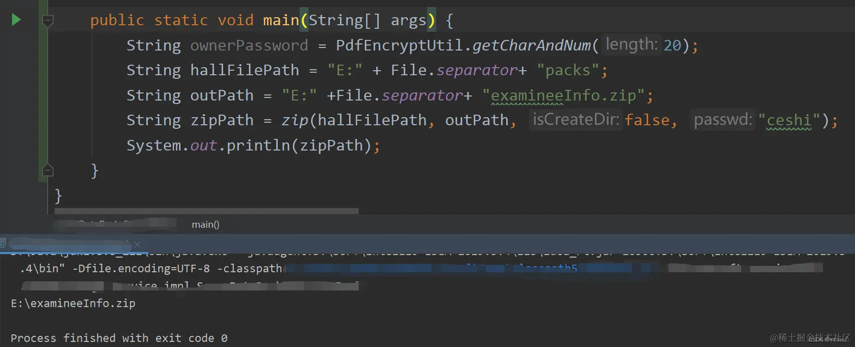 //调用压缩方法zip进行压缩,参数含义下面介绍,返回的是压缩包的输出路径
