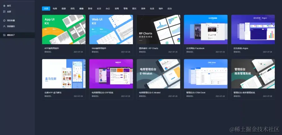 进入摹客RP之后,【模版例子】板块一下子就吸引了我的眼球,丰富的模版,多场景的案例,有趣的交互,很多时候会让产品经理的工作豁然开朗,灵感迸发。