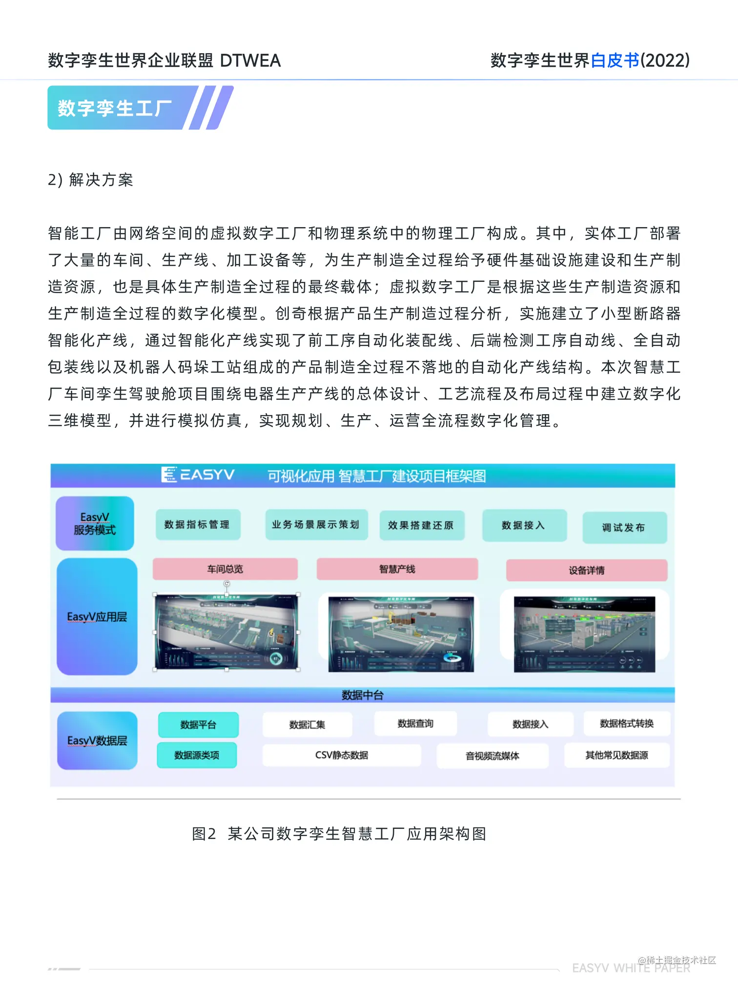 企业迫切需要通过智能化和数字化的自动装配产线,实现装配自动化和智能化,提高生产效率和产品质量,从而减少对人工人的需求,最终实现智能化精益生产管理和运营。该公司大力推进智能制造改革,希望借助数字化手段将其生产调度、业务数据以孪生可视化的形态进行呈现,共同打造智慧工厂典范。