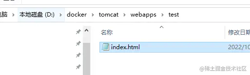 - 创建文件index.html 在D:\docker\tomcat\webapps\test创建文件index.html