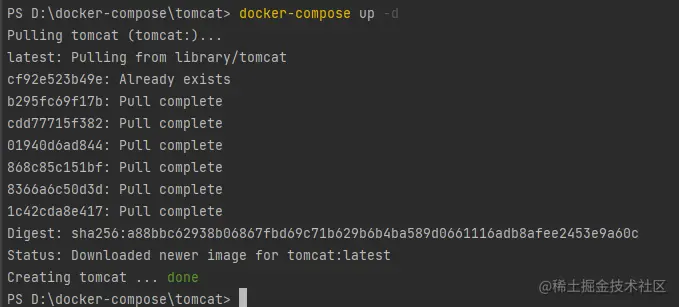 在目录 D:\docker-compose\tomcat 创建docker-compose.yml文件
