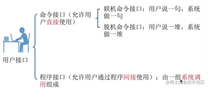 操作系统作为一个桥梁,需要向上提供简单易用的服务。主要包括,命令接口和程序接口。