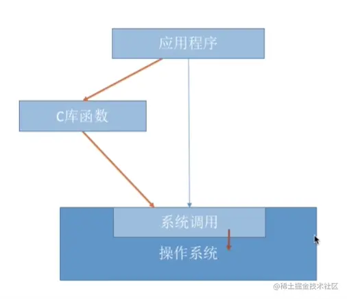 其实应用程序可以先调用语言的库函数,然后这些库函数,会再调用专门为了系统调用的函数。